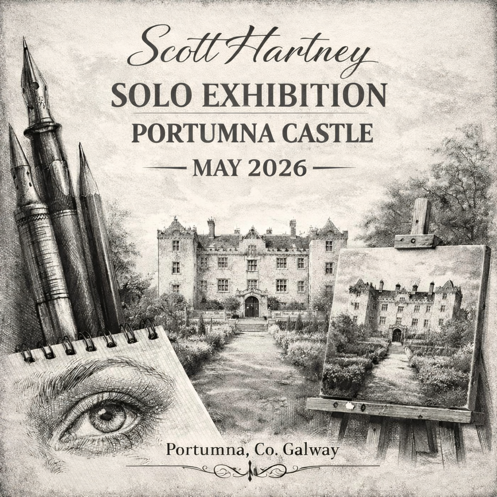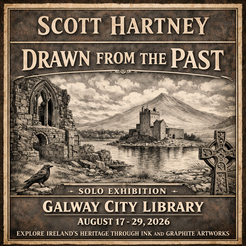 Drawn from the Past is a solo exhibition by Scott Hartney exploring Ireland’s rich architectural and cultural heritage through detailed ink and graphite drawings. Each work reflects a deep respect for history, craftsmanship, and place, inviting viewers to slow down and connect with the stories embedded in stone, ruin, and landscape.