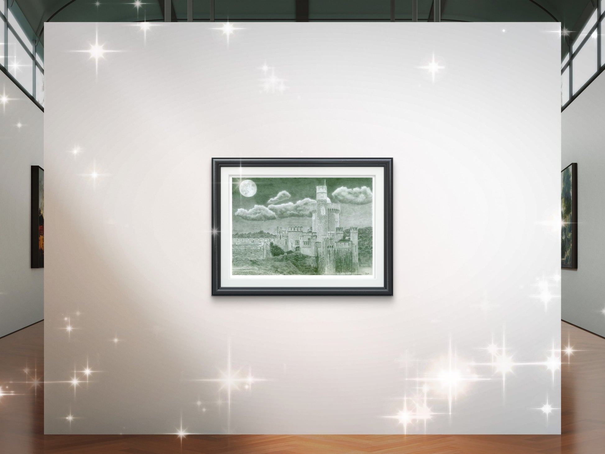 Executed entirely by hand in graphite, the work reveals subtle tonal shifts and fine line detail that reward close viewing. The surrounding negative space is intentional, giving presence to both the solidity of the tower and the atmosphere that envelops it — a balance between strength and calm, permanence and passage.